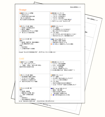 色の心理解説シート/セッション台紙